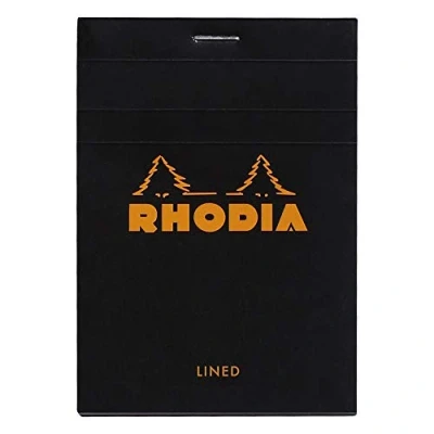 RHODIA 126009C Stapled Notepad N12 Black 8.5x12 cm Lined 80 Detachable Sheets 80G White Clairefontaine Paper Soft, Resistant and Waterproof Coated Card Cover Basics
