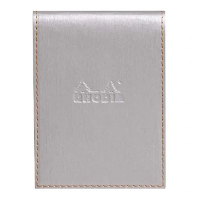 RHODIA 128201C Clipboard Case + Stapled Notepad N12 Silver 8.5x12 cm Lined 80 Detachable Sheets White Clairefontaine Paper g/m Pencil Holder Faux Leather Rhodiarama Collection