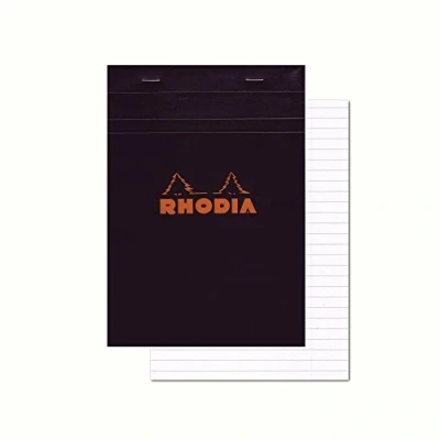 RHODIA 166009C Stapled Notepad N16 Black A5 Lined 80 Detachable Sheets White Clairefontaine Paper g/m Soft, Resistant and Waterproof Coated Card Cover Basics