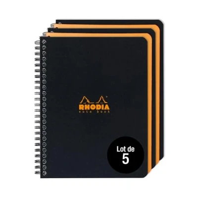 RHODIA 19342Cpack Lot de 5 Cahiers à Spirale (Reliure Intégrale) Notebook Noir ou Orange A5+ 16 x 21 cm Petits Carreaux 160 p Détachables 80 g/m² Couverture Souple et résistante