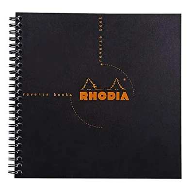 RHODIA 193609C Spiral Notebook (Full Binding) Reverse Book Black 21x21 cm Small Squares 160 Detachable Pages Clairefontaine Paper 80 g/m Soft and Resistant Cover Classic