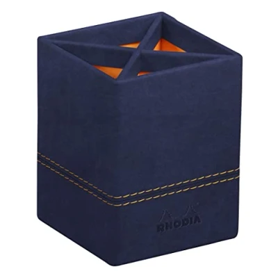 RHODIA 194534C Midnight Blue Pencil Holder 8x8x11 cm Orange Saddle Stitching Faux Leather Exterior Home Office Collection Rhodiarama Organization & Design Storage