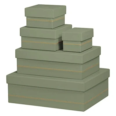 RHODIA 194564C Set of 5 Sage Nesting Boxes Orange Saddle Stitching Faux Leather Exterior Rhodiarama Home Office Collection Organization & Designer Storage