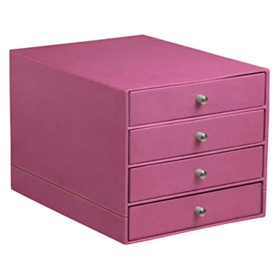RHODIA 194581C Fuchsia 4 Drawer File Organizer 24.8 x 32.7 22.8 cm Orange Saddle Stitching Faux Leather Exterior Home Office Collection Rhodiarama Organization & Designer Storage