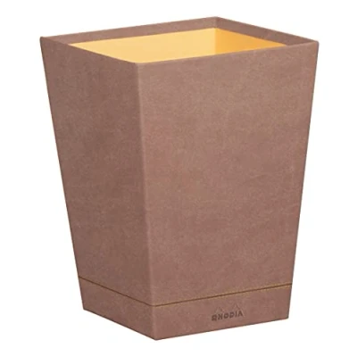 RHODIA 194621C Rosewood Waste Paper Bin 24x24x32 cm Orange Saddle Stitching Faux Leather Exterior Home Office Collection Rhodiarama Organization & Designer Storage