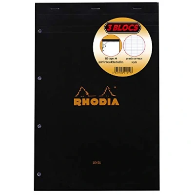 Rhodia 201019C set of 3 stapled letterhead N 20 Black/Orange,A4 + (21x31.8 cm),80 tear off sheets,4 hole perforation, large Séyès tiles, Clairefontaine white paper 80 g/m²