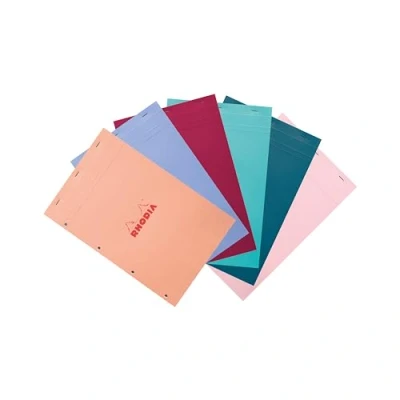 Rhodia 20195C bloc agrafé Couleurs N20 Seyès 80 feuillets microperforés et perforés 4 trous, couvertures assorties