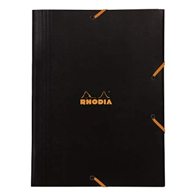 RHODIA 24329C Elastic File Folder Cardboard Pocket with 3 Black Flaps 24x32 cm Resistant Coated Card Office Storage and Document Filing A4 Format