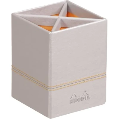RHODIA 318811C Silver Pencil Holder 8x8x11 cm Orange Saddle Stitching Faux Leather Exterior Rhodiarama Home Office Collection Organization & Designer Storage