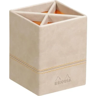 RHODIA 318815C Beige Pencil Holder 8x8x11 cm Orange Saddle Stitching Faux Leather Exterior Rhodiarama Home Office Collection Organization & Design Storage