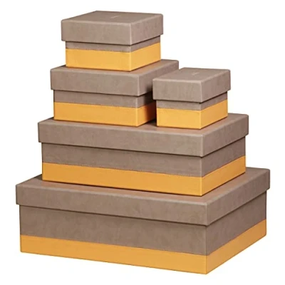 RHODIA 318884C Set of 5 Taupe Nesting Boxes Orange Saddle Stitching Faux Leather Exterior Rhodiarama Home Office Collection Organization & Designer Storage