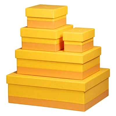 RHODIA 318986C Set of 5 Daffodil Nesting Boxes Orange Saddle Stitching Faux Leather Exterior Rhodiarama Home Office Collection Organization & Designer Storage