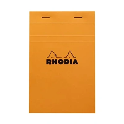 Rhodia Ref 14200C Classic Head Stapled Notepad (80 Sheets) No14 A6+ Size, 80gsm Superfine Vellum, Cardboard Back, Detachable Sheets, Squared Rulings Orange