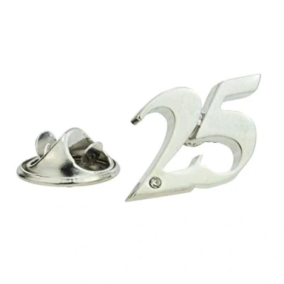 Rhodium Plated 25 Birthday Anniversary Lapel Pin Badge with Crystal Decoration
