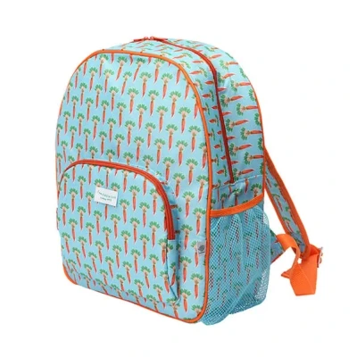 The RHS home grown backpack features a bright and colourful design with a carrot pattern with matching straps and zip fastener.The backpack is made from recycled plastic bottles which form durable RPET for an insulating lunch bag. The straps are padded for extra comfort plus a front pocket and a side pocket which is ideal for carrying drinks bottles.The backpack is easy to clean with a simple wipe and includes a name label for adding your child's name for identification.Ideal for school lunches and days out the contents will stay fresh and dry whilst on the move.
