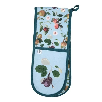 Stay protected when handling hot pots and pans with the RHS by Dexam Hooker Fruit Organic Cotton Double Oven Glove in blue. Crafted with a well-insulated design for enhanced safety, this double oven glove is a result of a collaboration with the Royal Horticultural Society.Constructed from organic cotton yarn, this eco-friendly choice minimises water usage, reduces soil erosion, and avoids the use of harmful pesticides. It also supports farmers by allowing additional crops to be grown alongside the cotton, preserving soil biodiversity.The double oven glove showcases a delightful design featuring various apple, nectarine, and plum varieties on a blue background with green trim. These fruit illustrations originate from William Hooker (1779-1832), a renowned fruit illustrator of his time. Sourced directly from the Royal Horticultural Society (RHS) Lindley Collections, which houses the world's premier collection of gardening books, printed materials, archives, photography, and botanical art.Plus, enjoy the convenience of a handy hanging loop and the ease of machine washing at 30°C.Pair this organic cotton double oven gloves with other items from the Hooker Fruit collection for a cohesive and charming look.