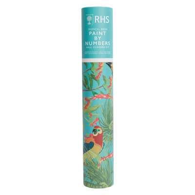 RHS The Royal Horticultural Society Paint by Numbers Hanging Kit with 24 Paints & 3 Brushes, Tropical Birds Design, 400 x 500 mm, Multicoloured, Learn to for Adults