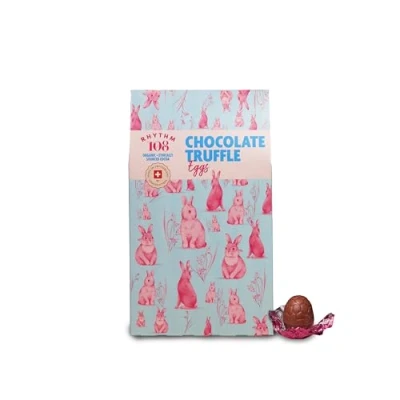 Rhythm 108 Swiss Vegan Chocolate Truffle Eggs 500g, Organic Gluten Free Easter Chocolate, Creamy M’lk with Ganache Centre
