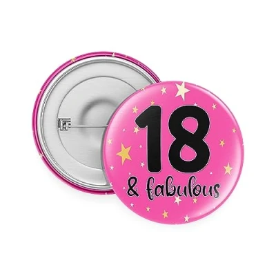 Rib Ticklerz 18th Birthday Pin Badge 18 And Fabulous Age Today Funny Novelty Gift For Him & Her Best Friend Colleague Joke Present BA22