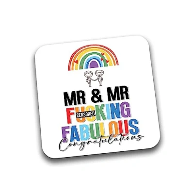 Rib Ticklerz Funny Mug Coaster Novelty Gay Men Wedding Gift Mr & F*cking Fabulous Congratulations Engagement Best Friend Marriage Newly Weds DC158