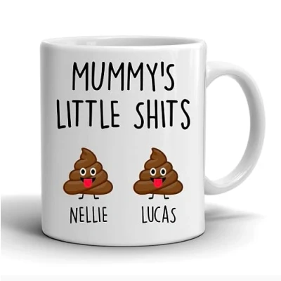 Rib ticklerz Funny Personalised Custom Mug Mummy's Little Shits Mother's Day Gift Mummy Birthday Christmas Xmas Present Joke MG111