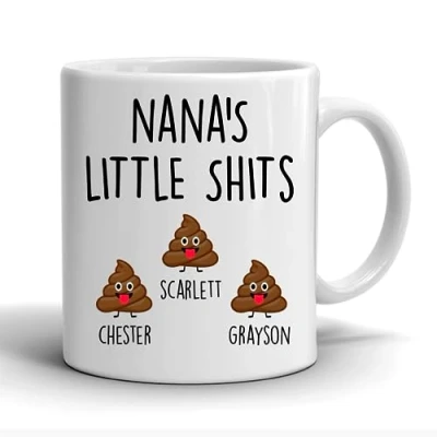 Rib ticklerz Funny Personalised Custom Mug Nana's Little Shits Mother's Day Gift Nana Birthday Christmas Xmas Present Joke Nan MG109