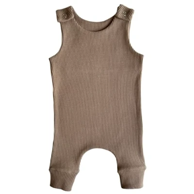 Ribbed Dungarees Kids Baby Shower Gifts Sleepsuits Footless Jumpsuit Jumper Playsuit Onesie (18 24 Months, Biscuit)