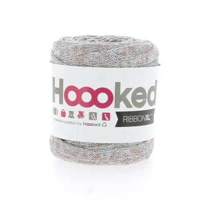 Recycled Cotton This limited RibbonXL with recycled Lurex is a great way to create glamorous effects in your crochet or knit projects. The metallic appearance adds the perfect amount of shimmer to your DIY creations. Each roll RibbonXL weighs approx. 250 grams has 85 meters lenght and crochets or knits a dimension of 40 x 40 cm. RibbonXL is a bulky and slightly elastic recycle cotton yarn. We recommend to use a crochet hook 8-12 mm, depending on your preferences. RibbonXL is machine washable and suitable for everyday use. Washing instructions: wash cold and with similar colours.