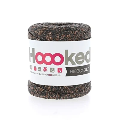 Recycled Cotton This limited RibbonXL with recycled Lurex is a great way to create glamorous effects in your crochet or knit projects. The metallic appearance adds the perfect amount of shimmer to your DIY creations. Each roll RibbonXL weighs approx. 250 grams has 85 meters lenght and crochets or knits a dimension of 40 x 40 cm. RibbonXL is a bulky and slightly elastic recycle cotton yarn. We recommend to use a crochet hook 8-12 mm, depending on your preferences. RibbonXL is machine washable and suitable for everyday use. Washing instructions: wash cold and with similar colours.