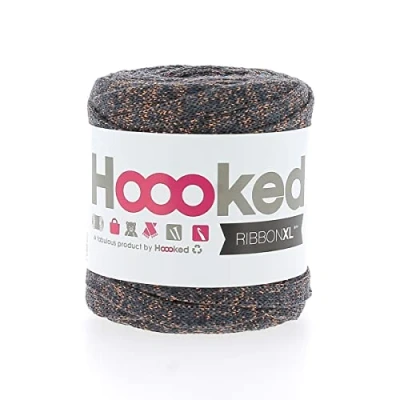 Recycled Cotton This limited RibbonXL with recycled Lurex is a great way to create glamorous effects in your crochet or knit projects. The metallic appearance adds the perfect amount of shimmer to your DIY creations. Each roll RibbonXL weighs approx. 250 grams has 85 meters lenght and crochets or knits a dimension of 40 x 40 cm. RibbonXL is a bulky and slightly elastic recycle cotton yarn. We recommend to use a crochet hook 8-12 mm, depending on your preferences. RibbonXL is machine washable and suitable for everyday use. Washing instructions: wash cold and with similar colours.
