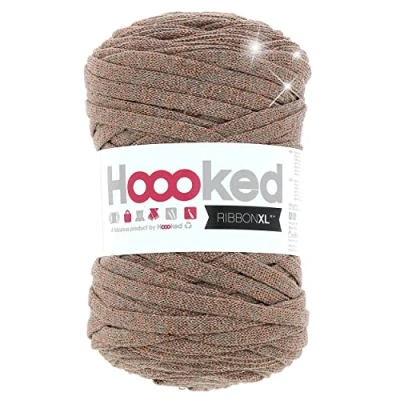 Recycled Cotton This limited RibbonXL with recycled Lurex is a great way to create glamorous effects in your crochet or knit projects. The metallic appearance adds the perfect amount of shimmer to your DIY creations. Each roll RibbonXL weighs approx. 250 grams has 85 meters lenght and crochets or knits a dimension of 40 x 40 cm. RibbonXL is a bulky and slightly elastic recycle cotton yarn. We recommend to use a crochet hook 8-12 mm, depending on your preferences. RibbonXL is machine washable and suitable for everyday use. Washing instructions: wash cold and with similar colours.