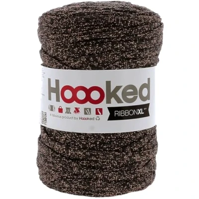 Recycled Cotton This limited RibbonXL with recycled Lurex is a great way to create glamorous effects in your crochet or knit projects. The metallic appearance adds the perfect amount of shimmer to your DIY creations. Each roll RibbonXL weighs approx. 250 grams has 85 meters lenght and crochets or knits a dimension of 40 x 40 cm. RibbonXL is a bulky and slightly elastic recycle cotton yarn. We recommend to use a crochet hook 8-12 mm, depending on your preferences. RibbonXL is machine washable and suitable for everyday use. Washing instructions: wash cold and with similar colours.