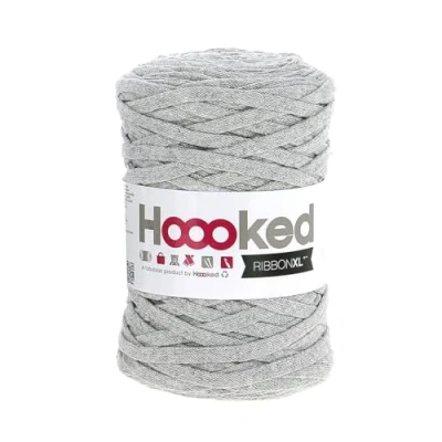 RibbonXL is our superb bulky and lightweight recycled fabric yarn that comes in standard series of our own fabulous Hoooked colours RibbonXL works easy, giving quick and stylish results. RibbonXL is an itch-free fabric yarn, it is slightly elastic and it knits very easy, giving you quick and stylish results Each roll RibbonXL weighs approx. 250 grams has 85 meters lenght and crochets or knits a dimension of 40 x 40 cm RibbonXL is a bulky and slightly elastic 100% recycled cotton yarn. We recommend to use a crochet hook 8-12 mm, depending on your preferences. RibbonXL is machine washable and suitable for everyday use. Washing instructions: wash cold and with similar colours.