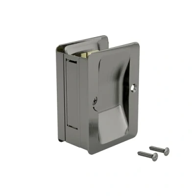 Adjustable door thickness of 1 1/4 in to 1 1/2 in (32 mm to 38 mm), compatible with left-hand and right-hand doors Made of durable steel with a stylish antique nickel finish, passage pulls are ideal for closets, living rooms, dining rooms, and kitchens Designed for use with pocket doors and most types of sliding doors and features a convenient latch for easy door closing Included: Mounting hardware is included for an easy installation Height x Width: 3 1/4 in (82 mm) x 2 1/4 in (58 mm), Weight: 0.27 pounds, Manufacturer: Richelieu Hardware