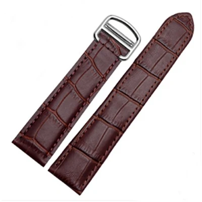 Richie strap]16mm 18mm 20mm Crocodile Skin Pattern Leather Watch Band Strap Buckle for Cartier Tank (16mm, Brown(Silver Buckle))