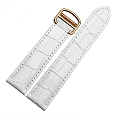 Richie strap]16mm 18mm 20mm Crocodile Skin Pattern Leather Watch Band Strap Buckle for Cartier Tank (16mm, White(Gold Buckle))