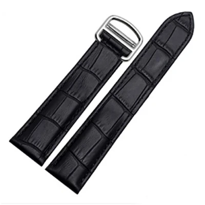 Richie strap]16mm 18mm 20mm Crocodile Skin Pattern Leather Watch Band Strap Buckle for Cartier Tank (18mm, Black(Silver Buckle))