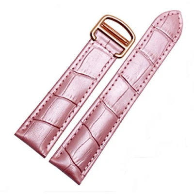 Richie strap]16mm 18mm 20mm Crocodile Skin Pattern Leather Watch Band Strap Buckle for Cartier Tank (18mm, Pink(Rose Gold Buckle))