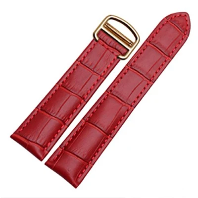 Richie strap]16mm 18mm 20mm Crocodile Skin Pattern Leather Watch Band Strap Buckle for Cartier Tank (18mm, Red(Gold Buckle))