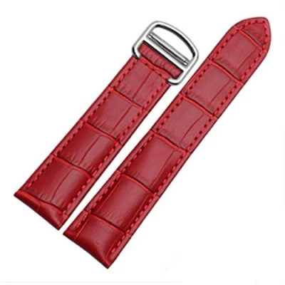 Richie strap]16mm 18mm 20mm Crocodile Skin Pattern Leather Watch Band Strap Buckle for Cartier Tank (18mm, Red(Silver Buckle))