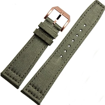 Richie strap]20mm 21mm 22mm Canvas Leather Watch Band Strap Fits for IWC Pilot's Watches (21mm, Light Green(Rose Gold Buckle))