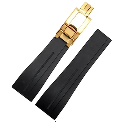 Richie strap]20mm/21mm Rubber Watch Strap Band Deployment Buckle Replacement fits Rolex Yacht Master Oysterflex Submariner GMT Daytona 5513/16800/14060/16610/16613 (20mm, Black(Gold Buckle))