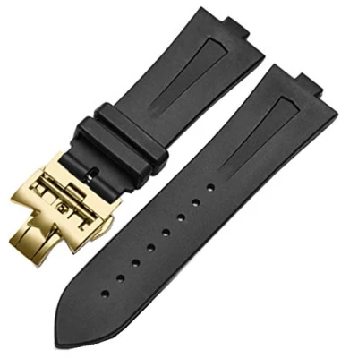 Richie strap] 25mm Black Rubber Replacement Watch Band Strap for Vacheron Constantin Overseas Series (Gold Buckle)