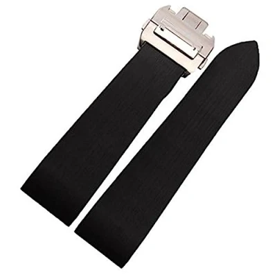 Richie strap]25mm Rubber Watch Band Strap Silicone Buckle fits for Cartier [Santos 100 W2020007] (Stainless Buckle)