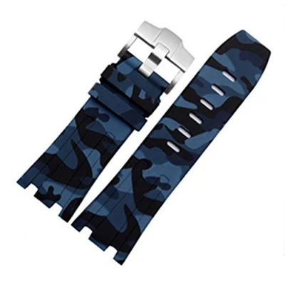 Richie strap]28mm Rubber Watch Strap Band OEM Style for AP100 Audemars Piguet Royal Oak Offshore Multi Camo Color (Camo Blue)