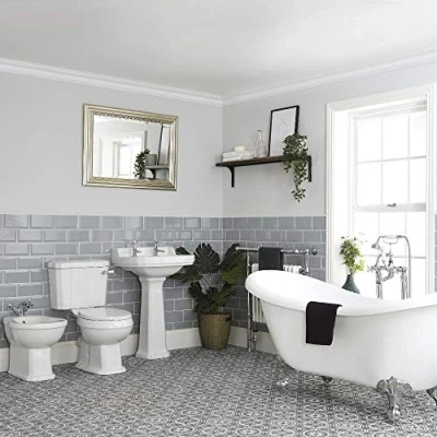 Give your bathroom a classic and coordinated look with the traditional Milano Richmond bathroom suite which comprises a 1750mm x 730mm double ended freestanding slipper bath with decorative claw feet close coupled toilet bidet and full pedestal basin. The acrylic constructed bath features a luxurious design for a comfortable bathing experience and a protective coating to resist stains and scuffs. Enhancing the timeless look are the premium quality ceramic basin bidet and toilet with their easy to clean glazes. Featuring a cistern with a chrome flush handle the toilet includes a soft close seat to reduce wear and tear on the pan. The basin is fitted with three tap-holes and has a full pedestal to conveniently hide the pipework from view for a neat installation. - Traditional design bathroom set to create a classic bathroom look - Premium quality ceramic construction toilet bidet and basin with easy to clean white glaze finish - Acrylic constructed bath with waste and decorative claw