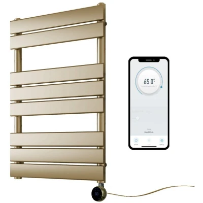 Richmond WiFi Smart Electric Heated Towel Rail Brushed Brass Flat Panel 400mm W x 800mm H