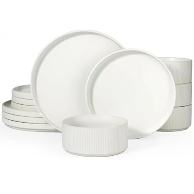 [Dinner Set for 4 People]: includes 4*(25cm/10inch)dinner plates, 4*(20cm/8inch)salad/appetizer plates, 4*(14cm/680ml)cereal bowls.This dinner set are the perfect size to serve a variety of dishes and is a great addition to a kitchen accessories [Microwave and Dishwasher Safe]: Our plates set are safe to use in the dishwasher and microwave. You can enjoy the peace of mind that comes with hassle-free cleaning and reheating [Healthy Dining Set]: Upgrade your dining experience with our beautiful and safe crockery set. Made with non-toxic materials, they keep your food pure, offer a healthy and enjoyable mealtime [Scratch-Resistant ]: Our tableware set is crafted from premium ceramic and fired at 2340℉ for 13.5 hours to create a strong scratch-resistant surface.,which ensuring that their beauty and utility are not compromised over time [Reactive Glaze Charm]: Star collection dinner sets features the reactive glaze. The subtle variations in hue and depth add an element of surprise and delight to each piece, ensuring that no two items are exactly the same [Exquisitely Crafted]: The vertical stripe design on our dinner plates set adds a sophisticated touch of modernity. The vertical lines play with light and shadow, creating a dynamic interplay that enhances the presentation of your culinary creations [Low Cost Maintenance]: We've designed this dishes set with built-in grooves on the bottom for easy stacking. This stackable feature saves space and minimizes friction between pieces and ensures your kitchen set will stand the test of time [The Ideal Present]: Whether for a wedding, housewarming, birthday, or holiday, our dinnerware are ready to impress, making them the perfect present for those who appreciate fine dining and exquisite design [Richmount's Promise]: If you encounter any issues with the product you purchased, please contact us immediately, and we will provide you with a quick and effective solution Thanks for choosing Richmount! Richmount is dedicated to creating healthy and safe dinnerware that turns every time you cooking and eating into a warm experience, Weight: 19.400679056 pounds, Manufacturer: famiware