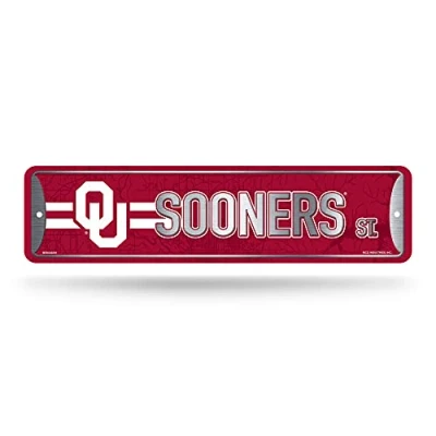 Rico Industries NCAA Oklahoma Sooners Home Décor Metal Street Sign (4" x 15") Great for Home, Office, Bedroom, & Man Cave Made