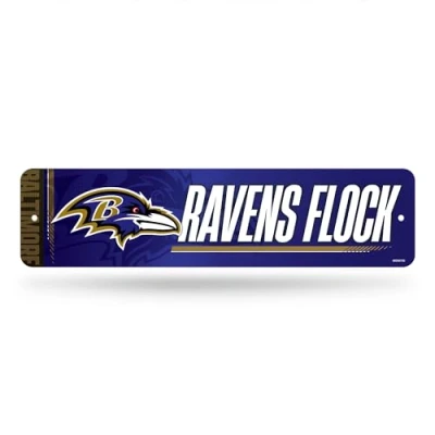 Rico Industries NFL Football Baltimore Ravens Metal Street Sign 4" x 15" Home Décor Bedroom Office Man Cave